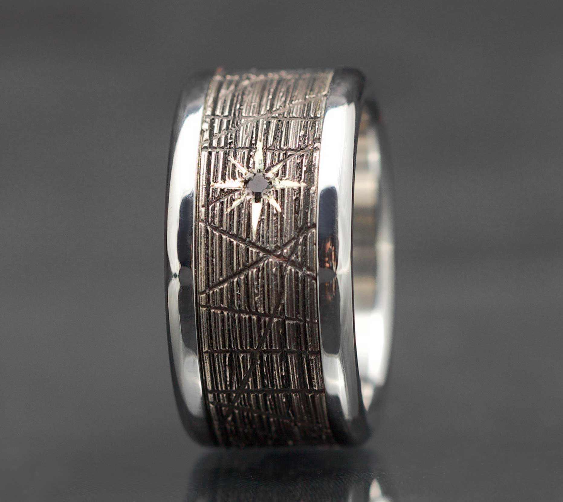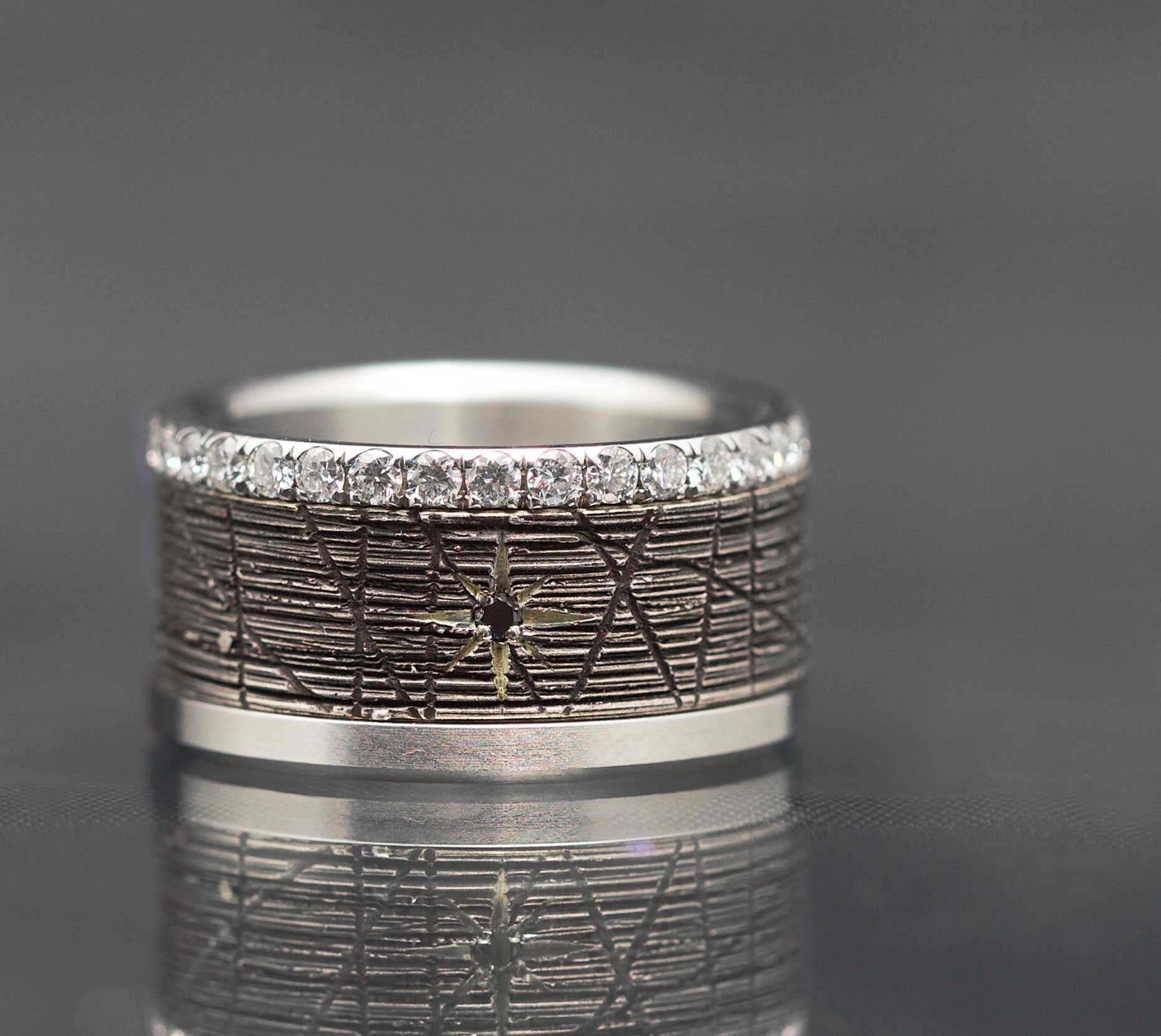 Addon argent cire perdue avec un diamant noir serti étoile. La bague personnalisable mood dans sa version haut de gamme (métaux précieux, diamants, etc) peut devenir bague de fiançailles, alliance ou bagues d'union. Nous pouvons effectuer une gravure personnalisée également sur la base.