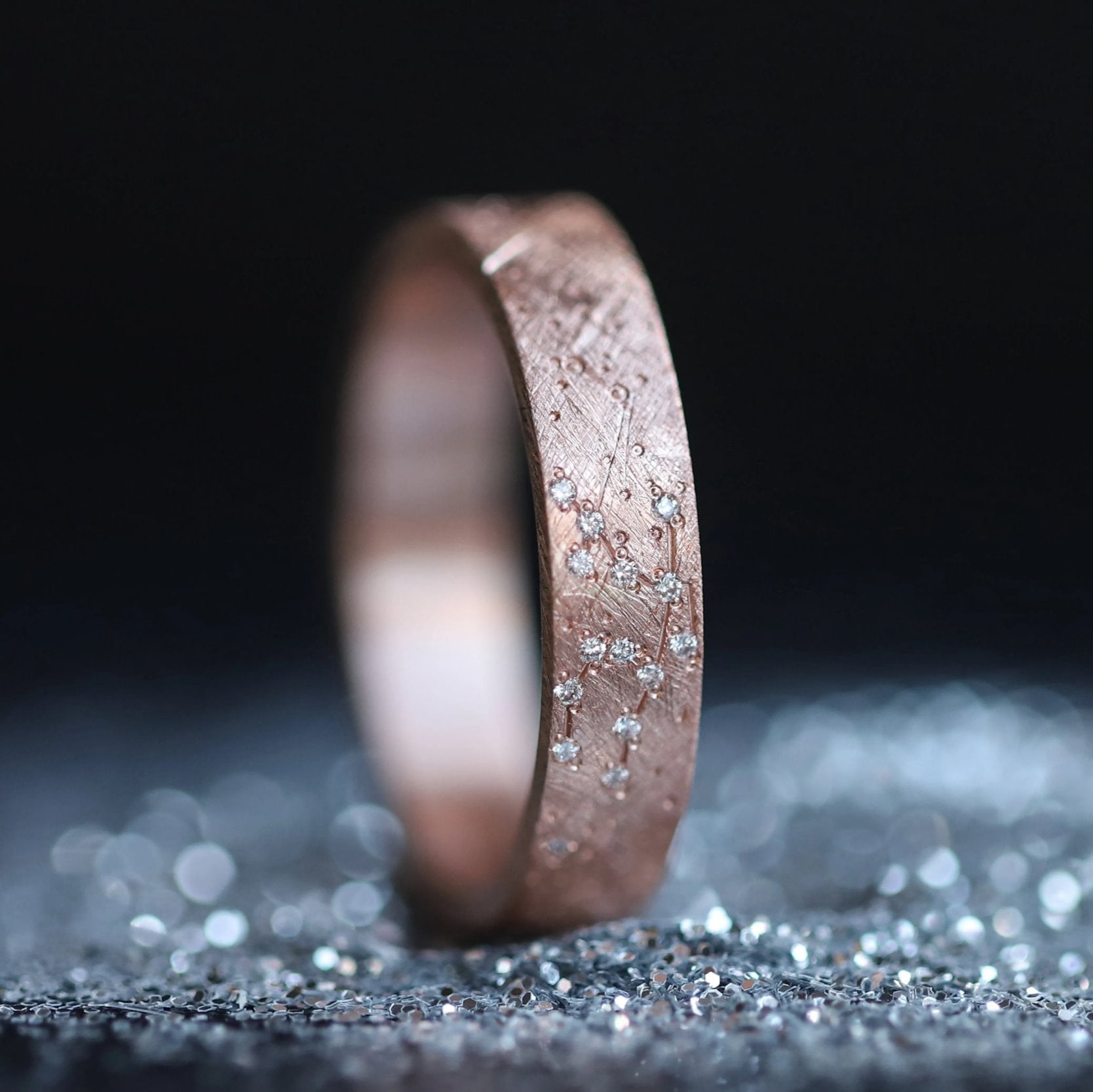 Addon en or rose brossé 9k deux tiers gravé et serti de diamants 0.9mm
