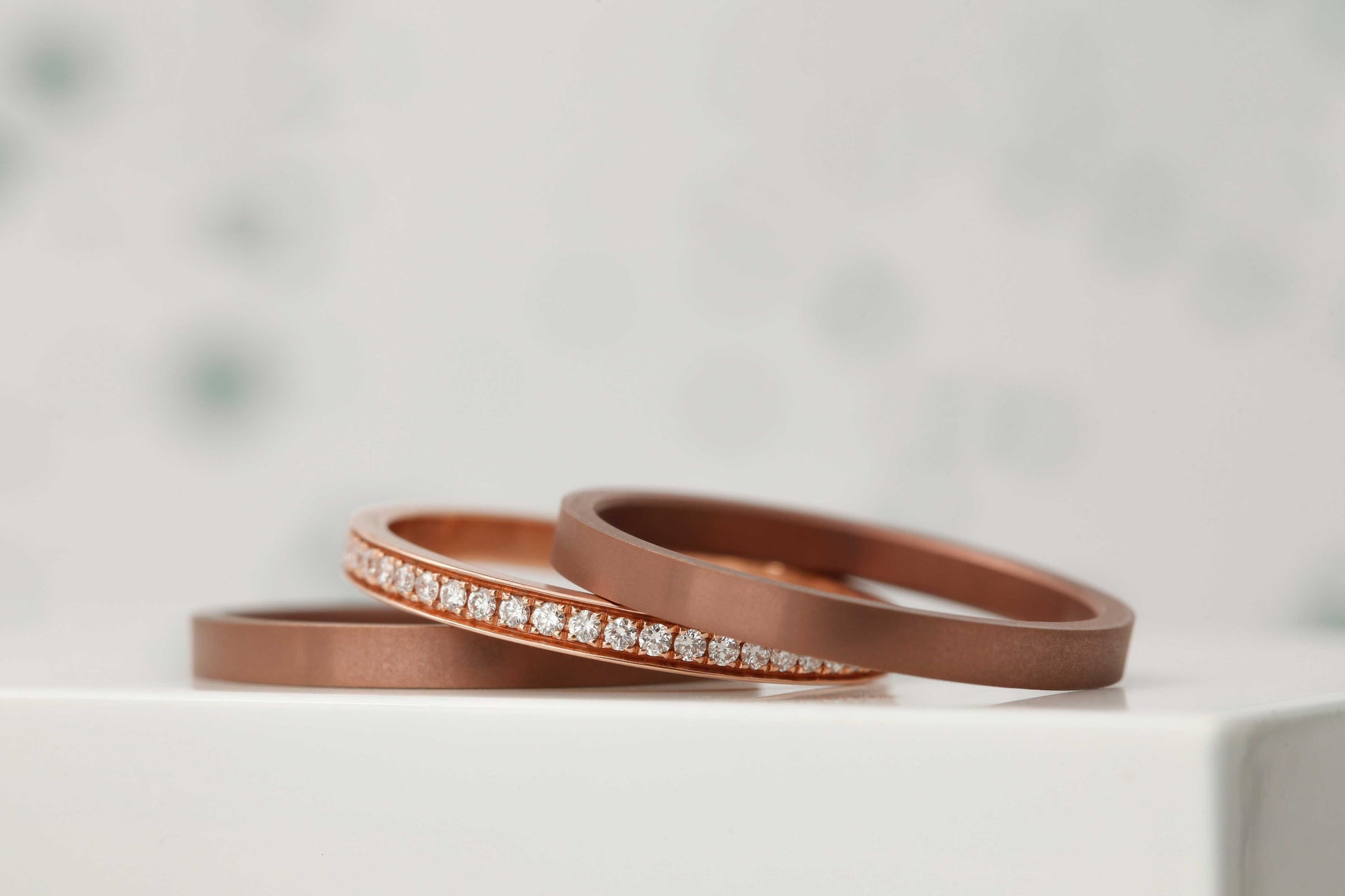 Ce coffret d'été comprend un medium en or rose 9k entièrement serti de diamants 1.3mm et deux medium en acier vieux rose.