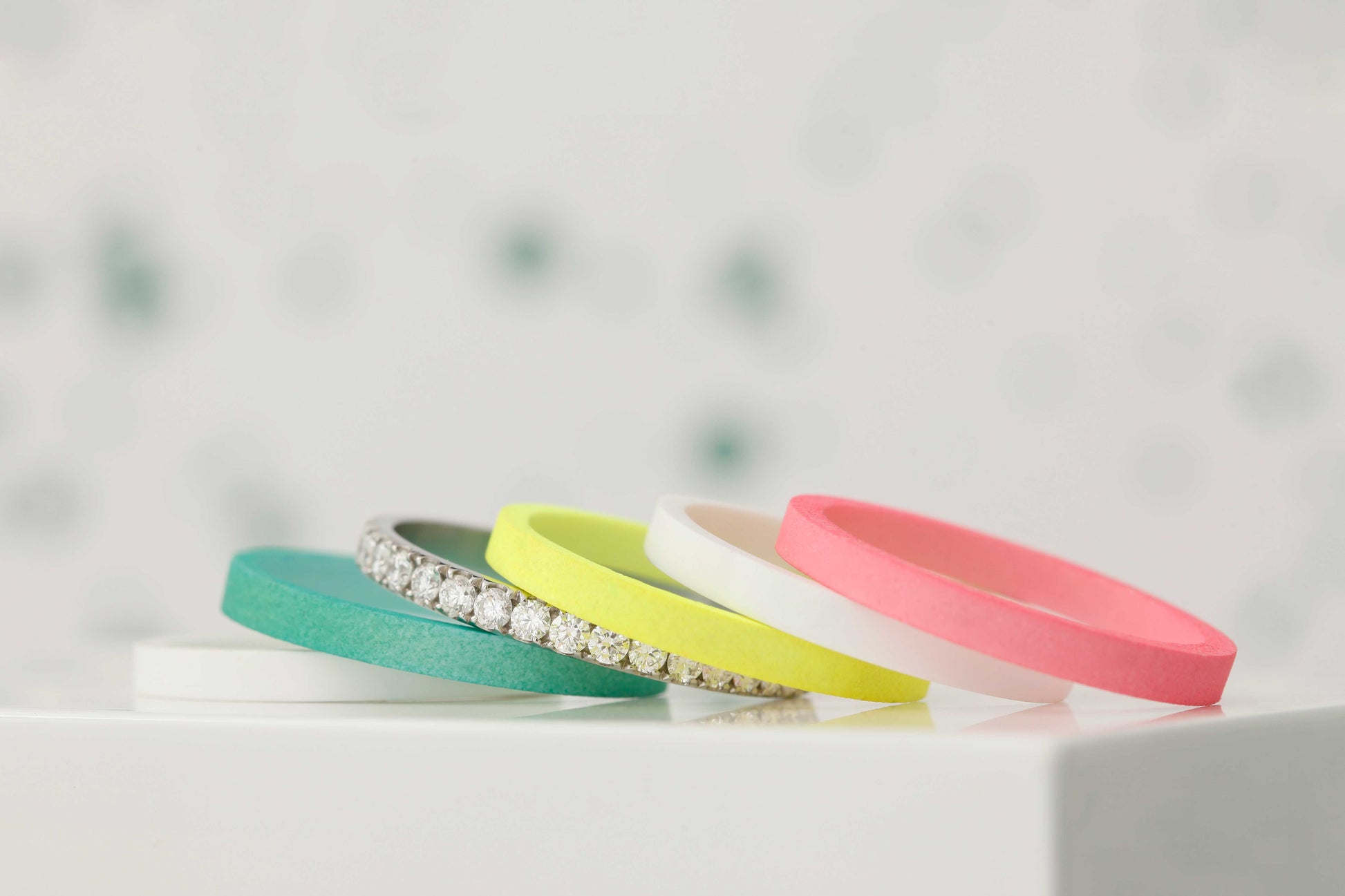 Ce coffret d'été comprend un medium en acier entièrement serti de diamants 1.9mm ainsi que deux medium en polymère blanc opaque, un medium en polymère sablé opaque rose, un medium en polymère sablé opaque turquoise et un medium en polymère sablé opaque yellow fluo