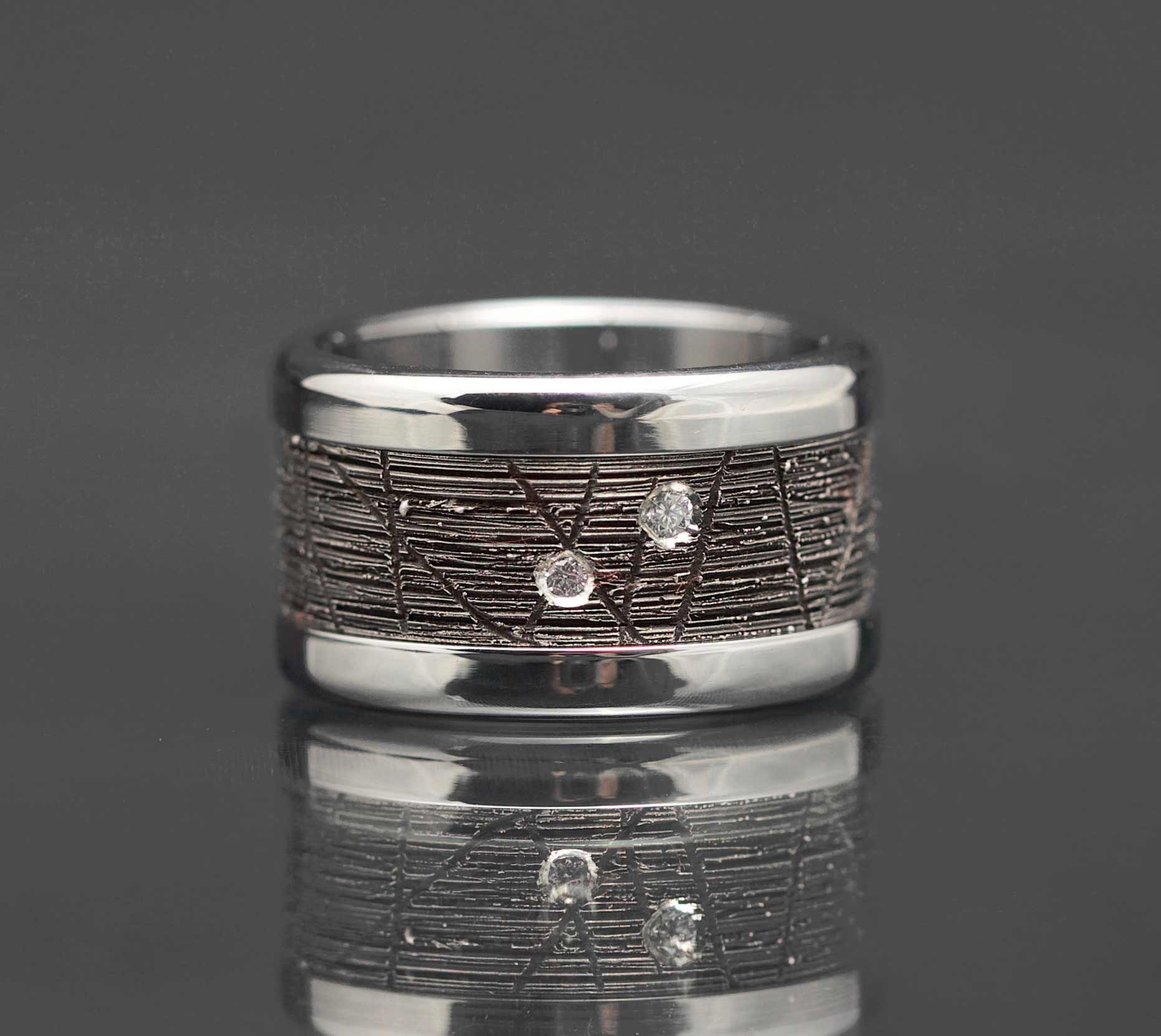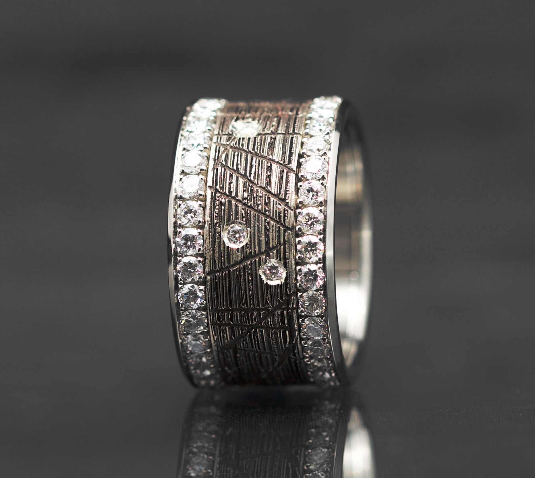 Addon argent cire perdue avec 5 diamants. La bague personnalisable mood dans sa version haut de gamme (métaux précieux, diamants, etc) peut devenir bague de fiançailles, alliance ou bagues d'union. Nous pouvons effectuer une gravure personnalisée également sur la base.