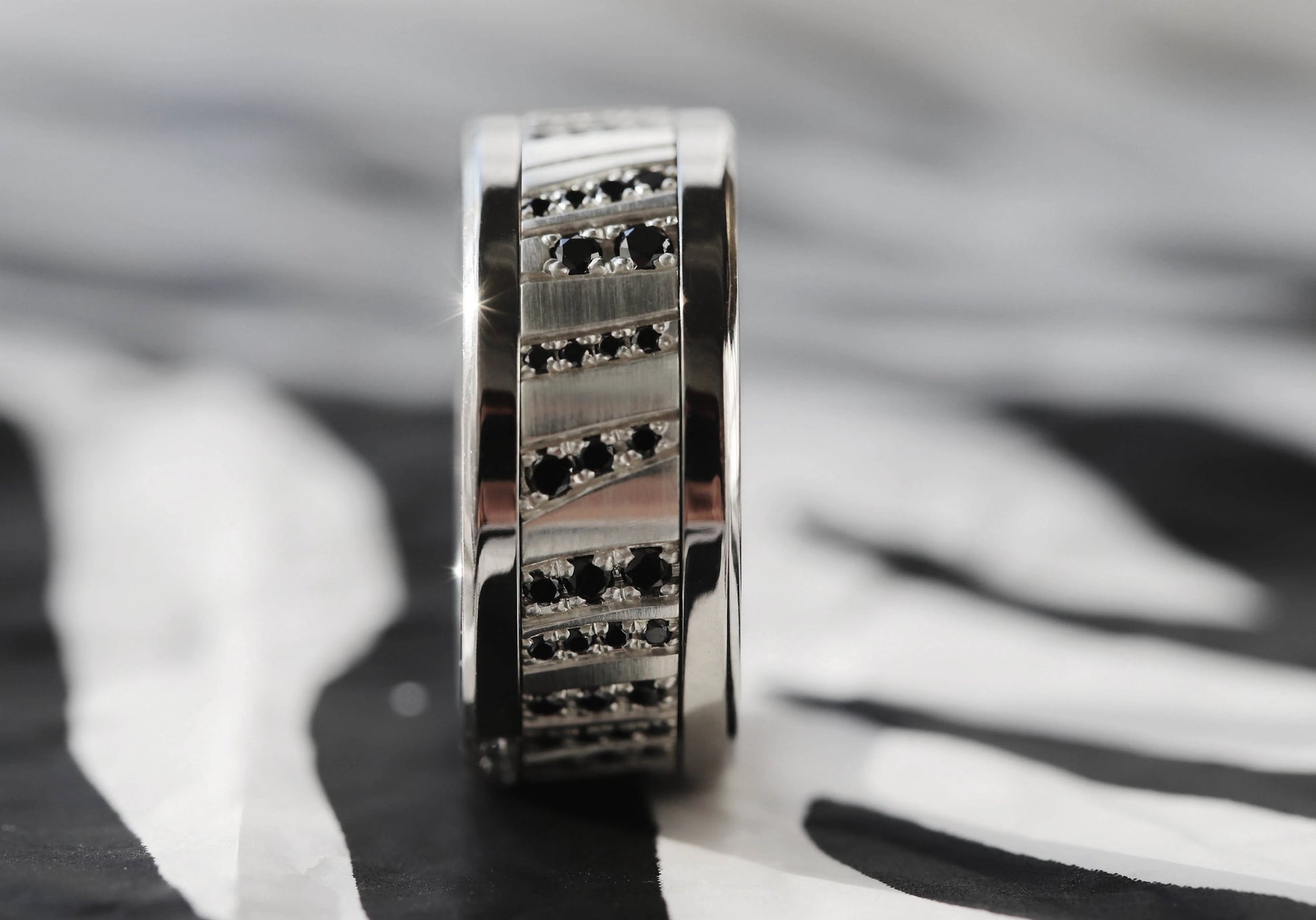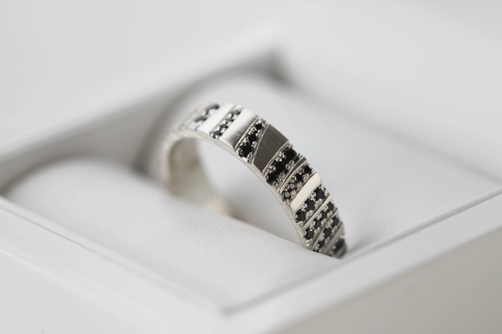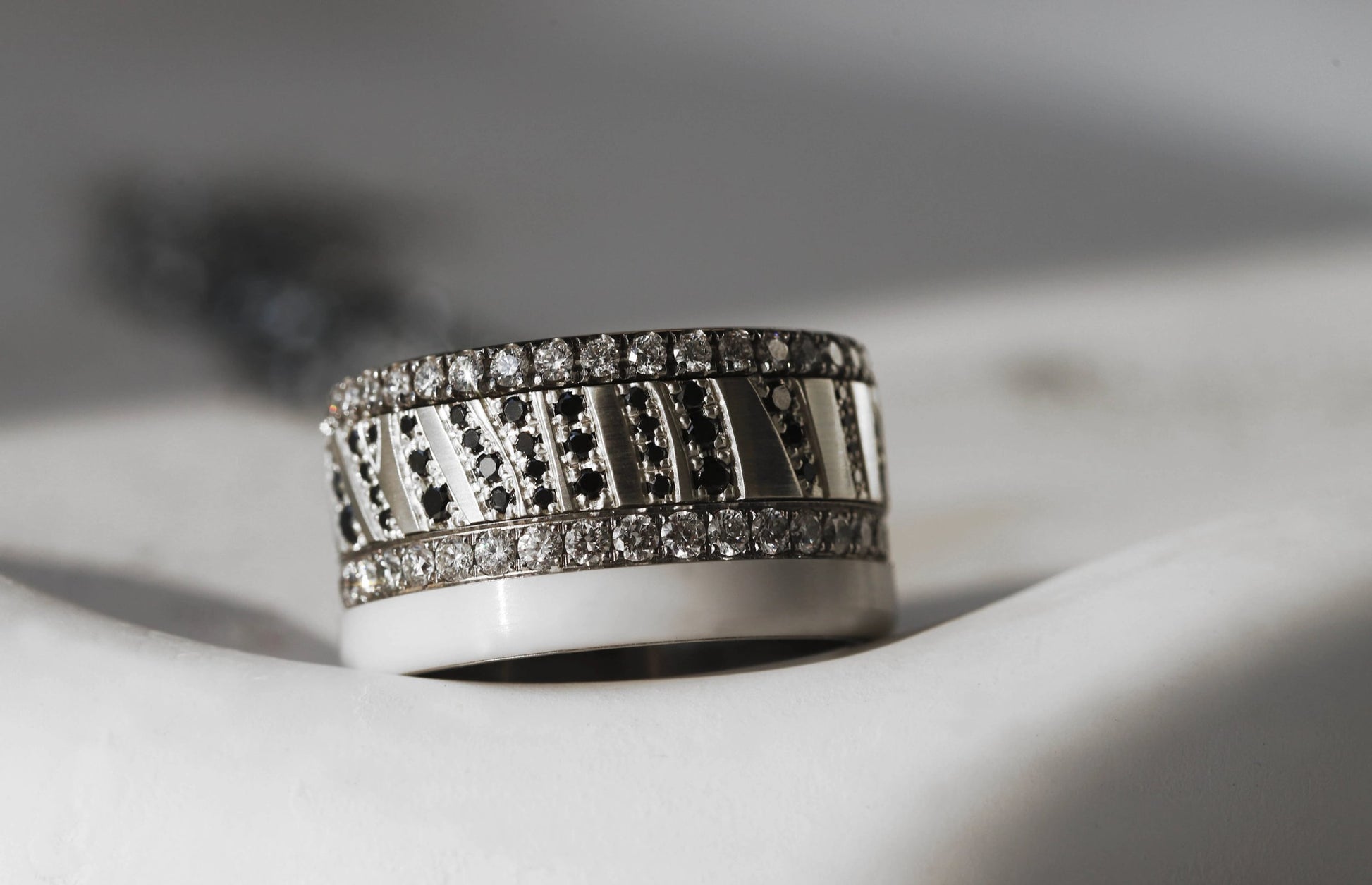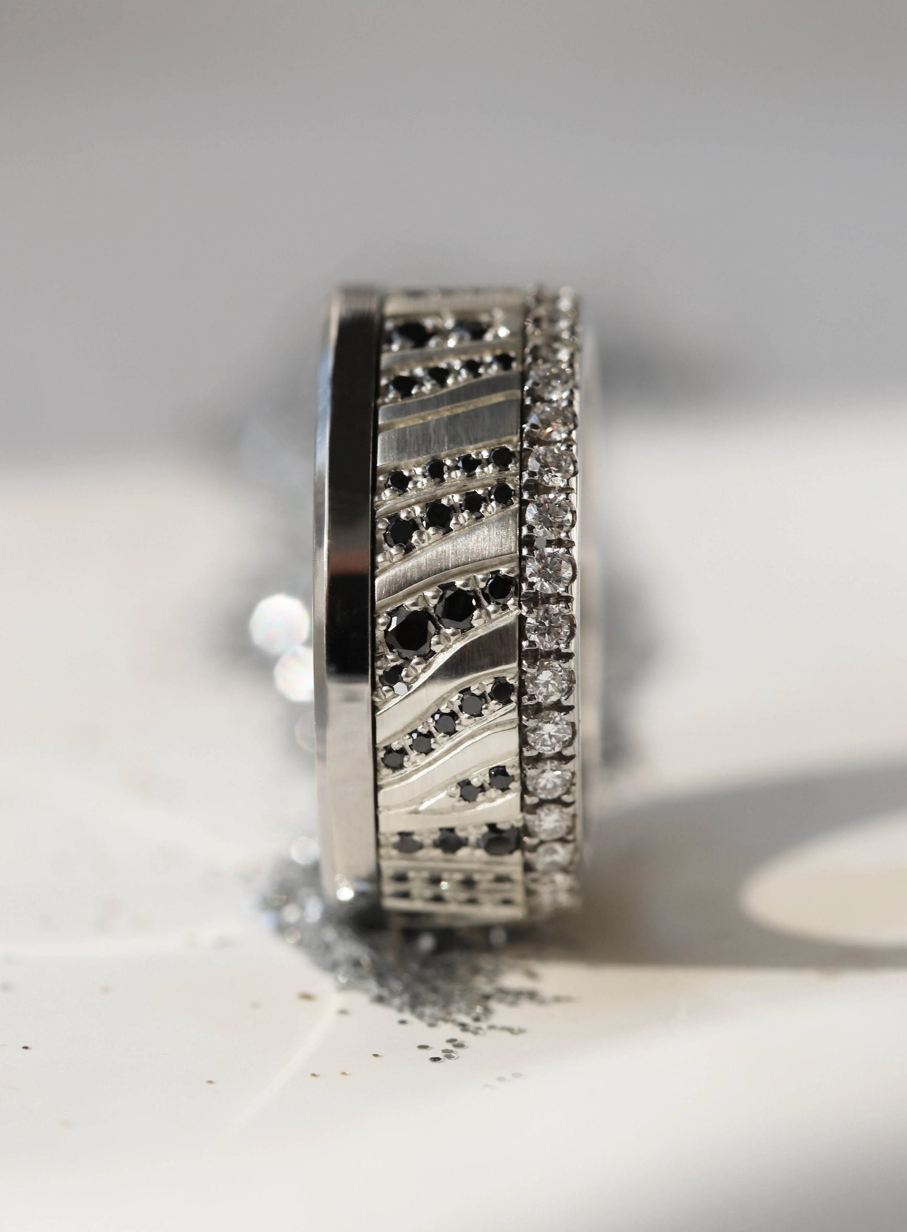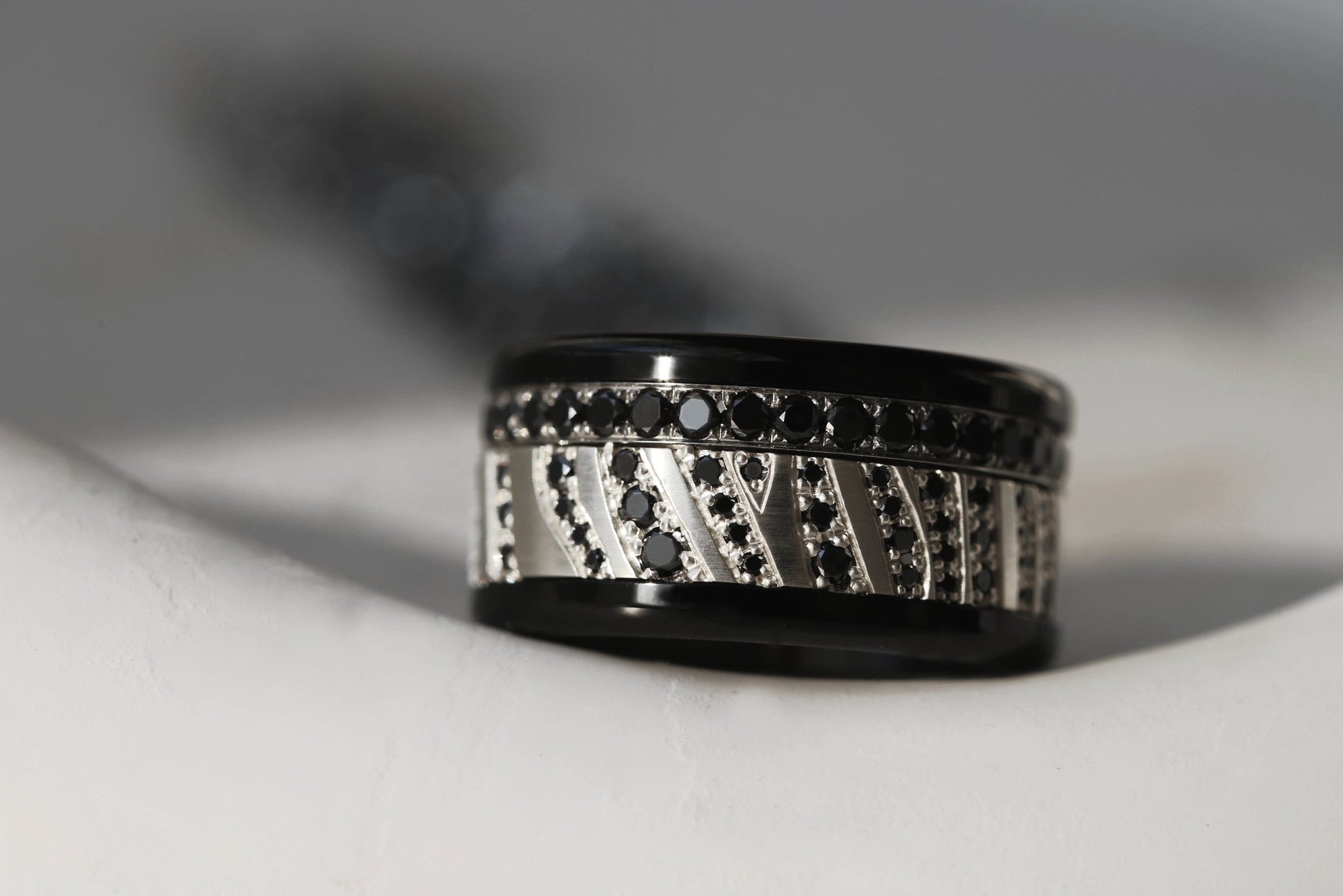 Deux tiers en argent "Zebra" avec diamant noir pour bague mood interchangeable.