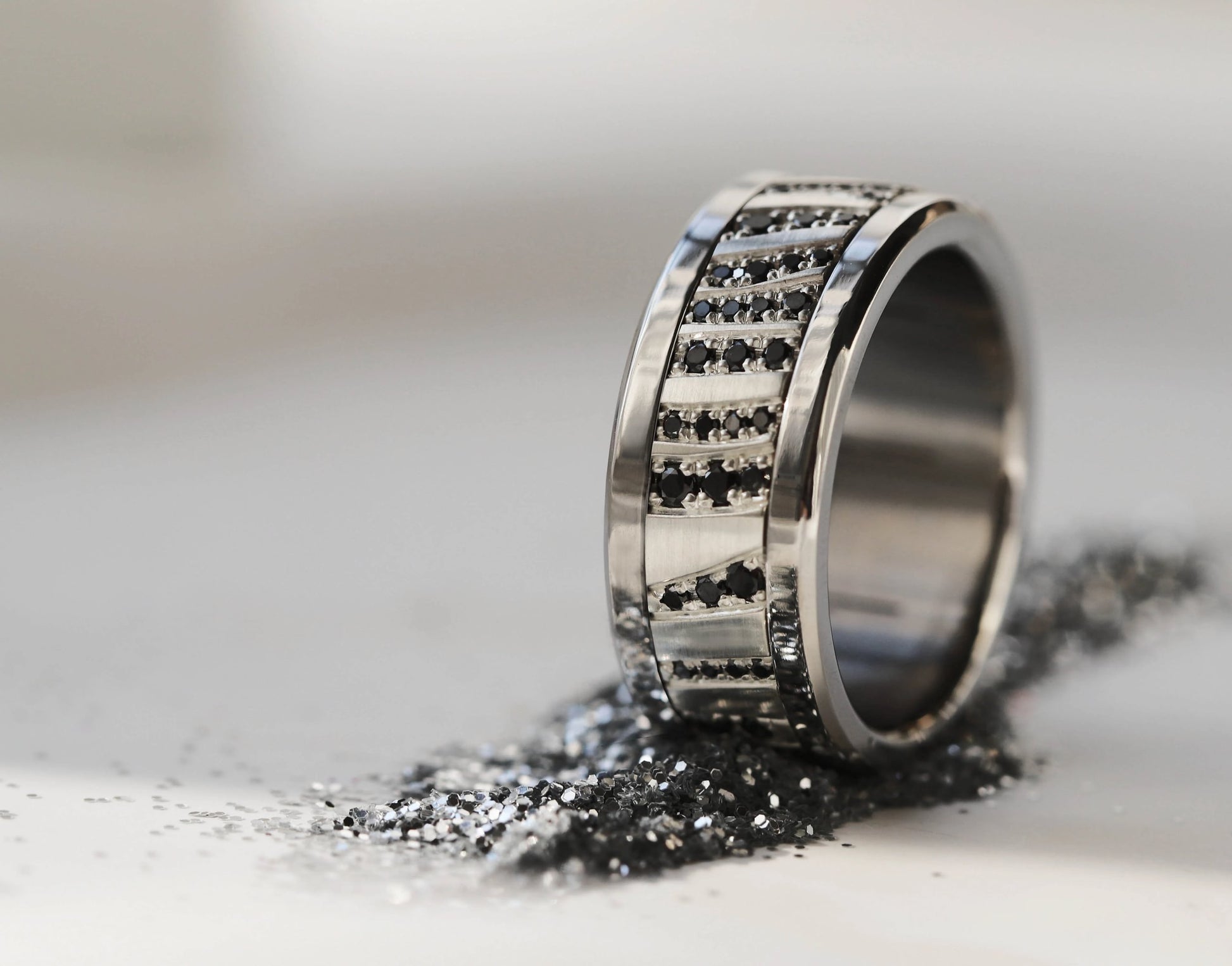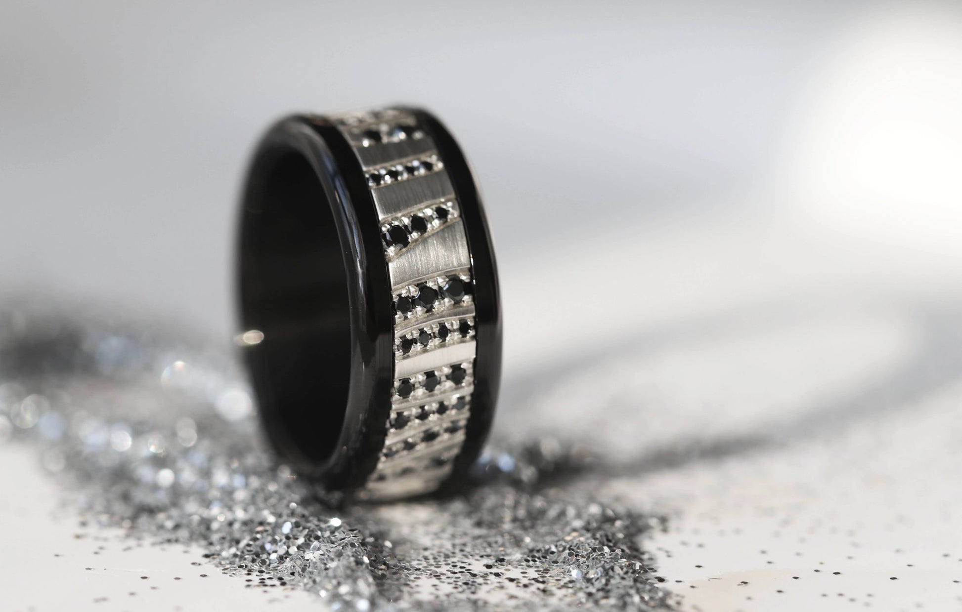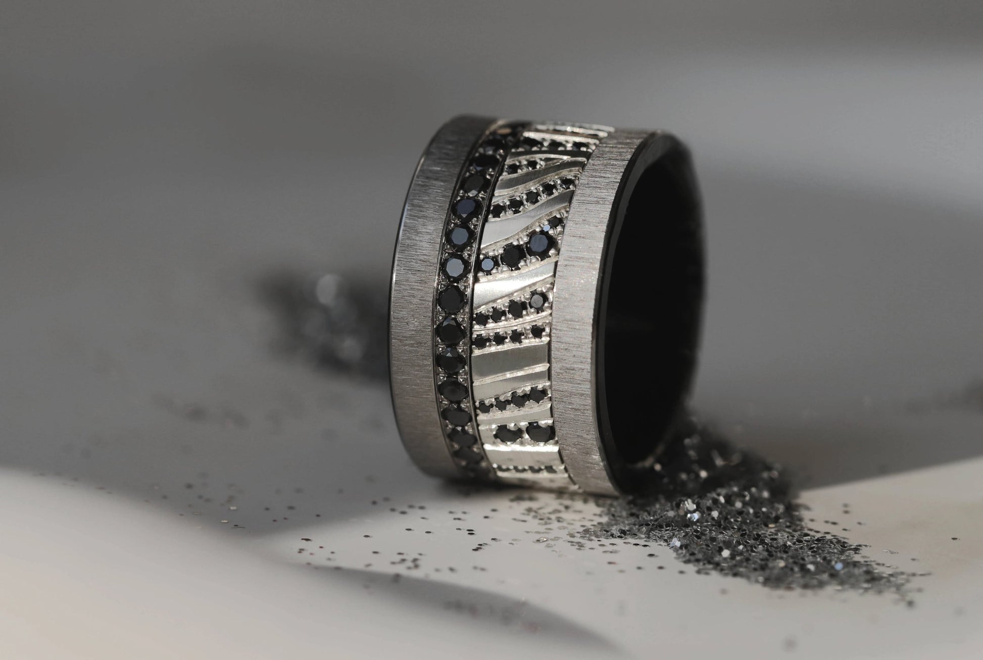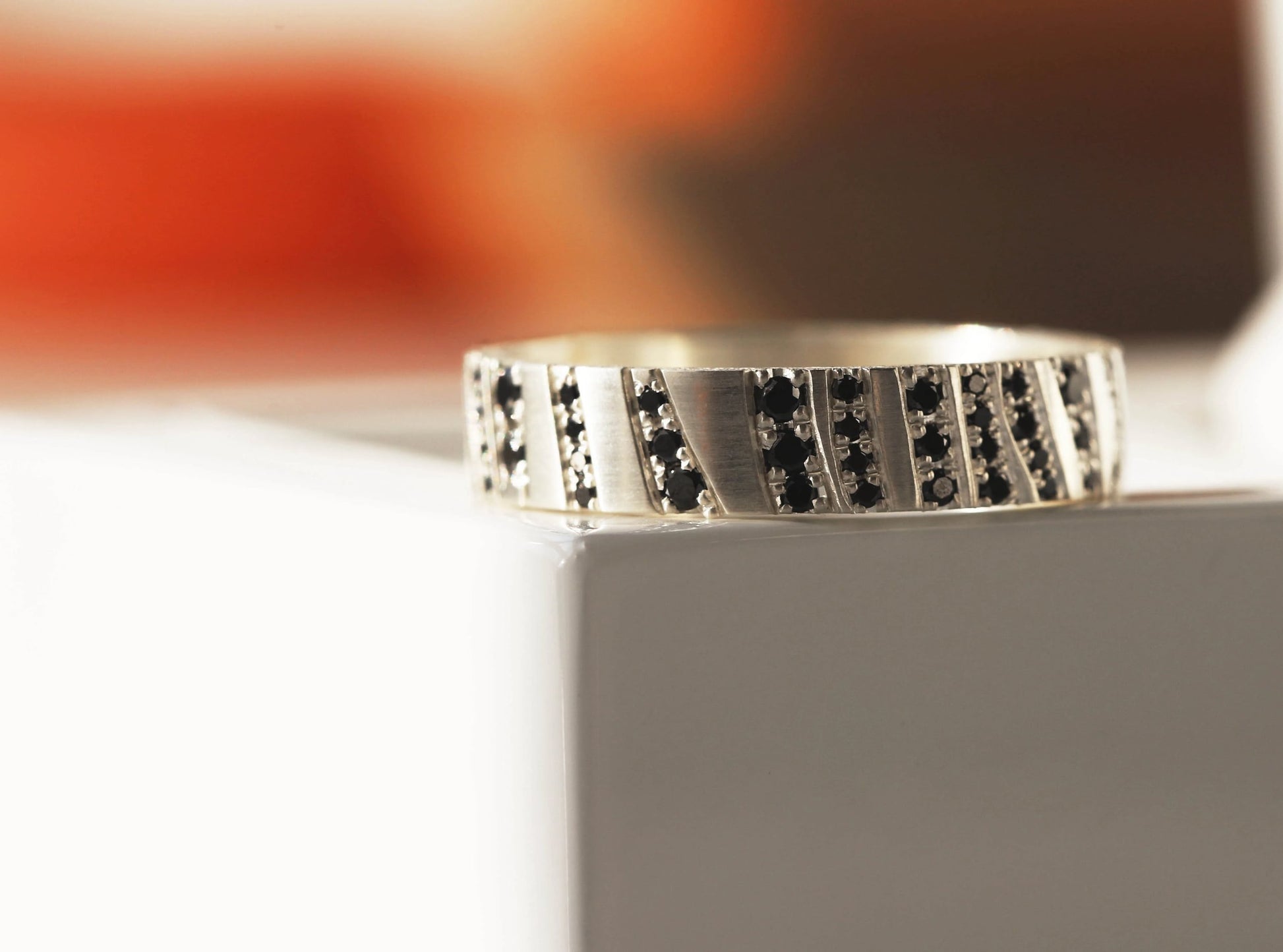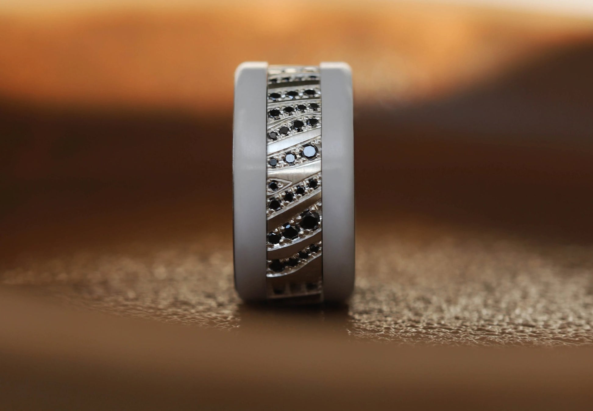 Deux tiers en argent "Zebra" avec diamant noir pour bague mood interchangeable.