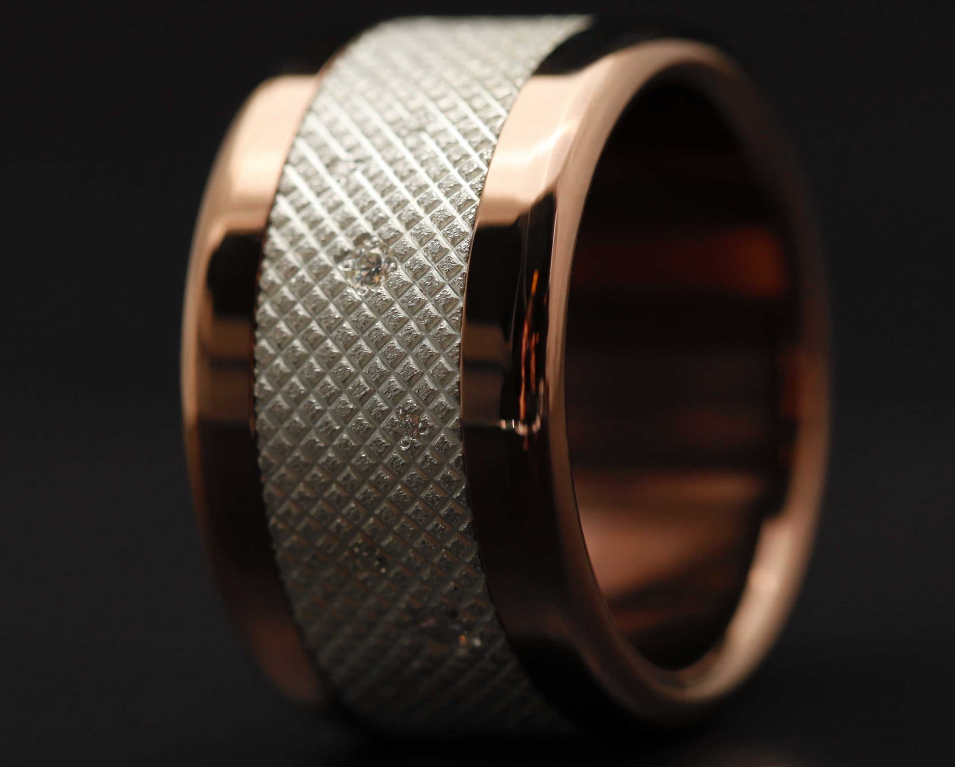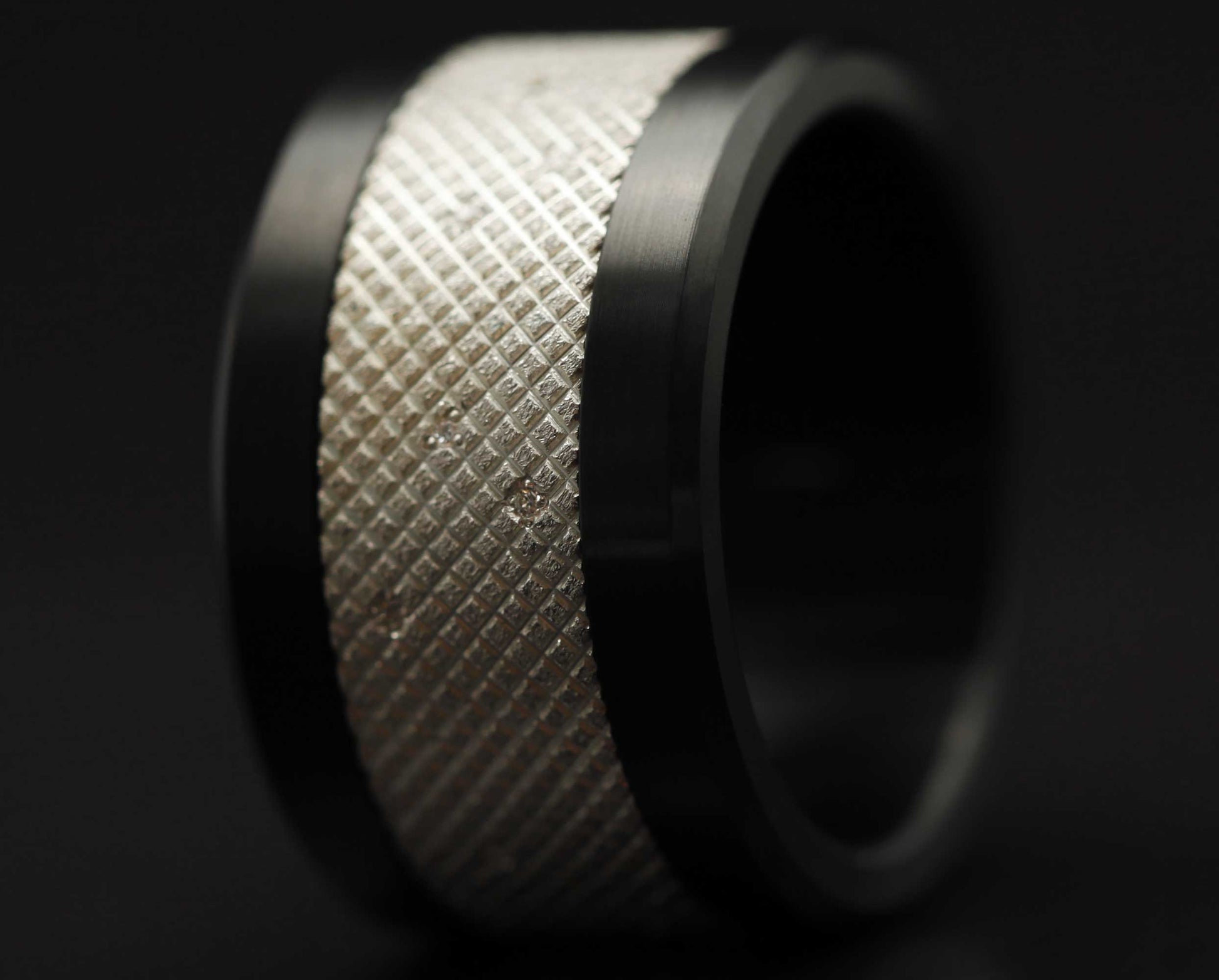 Une structure en acier forme la base du bijou sur laquelle un anneau vient se loger. La pièce maîtresse est constituée de deux éléments séparables qui soutiennent et retiennent l'anneau central appelé add/on. L'architecture particulière confère une grande liberté au possesseur de la bague, qui peut très aisément modifier l'allure de son bijou en changeant l'add/on.