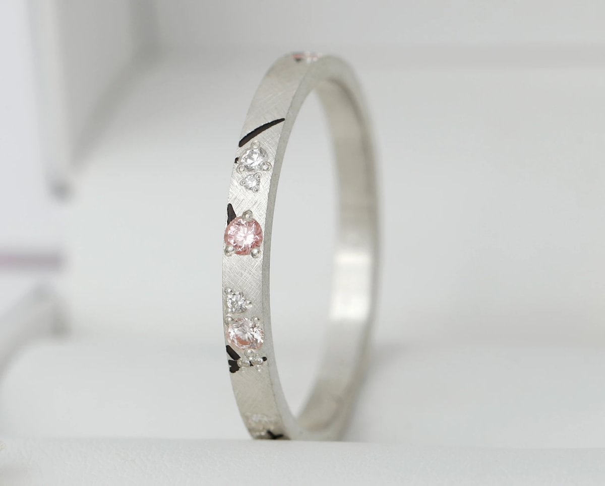 Innenring aus Silber (1 Medium Addon) Hanami 03 mit Diamanten und "Pur" rosa Diamanten für mood Luxus-Ring